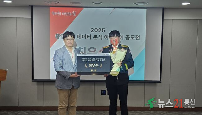 최우수상에는 황명 씨의 ‘기후요인 기반 화재 위험도 분석 및 예방 전략 제안’, 김민지 씨의 ‘충남 119 출동 시간 데이터 기반 응급구조 거점 및 경로 안내 최적화’가 선정됐다.