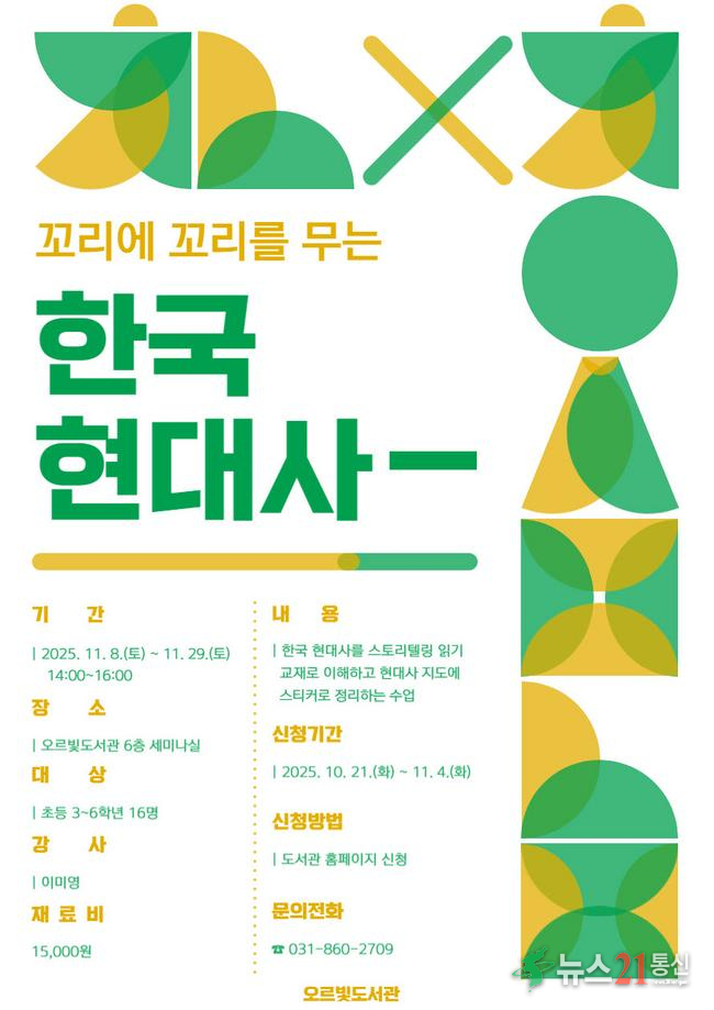동두천시 도서문화사업소 오르빛도서관이 초등학생을 대상으로 한국 현대사를 쉽고 흥미롭게 배울 수 있는 ‘꼬리에 꼬리를 무는 한국 현대사’ 프로그램을 운영한다.
