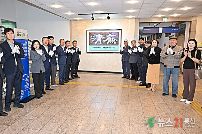 군위군은 지난 21일(화) 오후 5시, 군청 1층 로비에서 ‘청렴’ 서각작품 제막식을 개최했다.