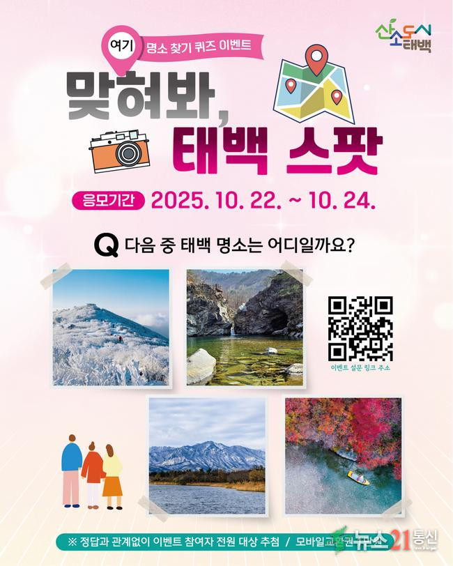 태백시는 10월 22일부터 24일까지 3일간 인스타그램을 통해 ‘태백 명소 퀴즈 이벤트’를 진행한다. 이번 이벤트는 지역 대표 관광지의 매력을 널리 알리고, 시민과 관광객이 함께 참여할 수 있는 소통형 홍보 프로그램으로 마련됐다.