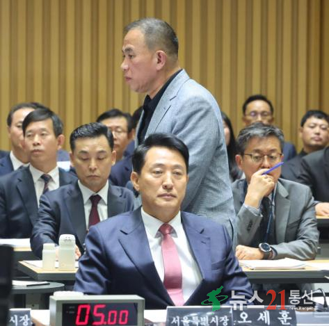 명씨보다 늦게 국감장에 들어온 오 시장은 명씨 쪽을 보지 않은 채 착석했다.