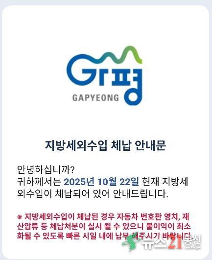 체납안내문 (사진=가평군 제공)