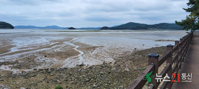 10월 중순 서산시 서해 앞바다가 썰물로 갯벌이 멀리 펼쳐져 있다.(사진=추현욱 기자)