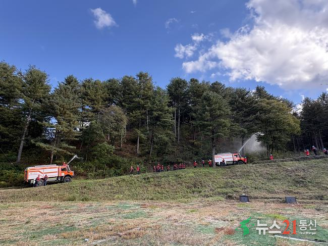 이번 훈련은 산불 발생 시 인명과 재산 피해를 최소화하고, 기관 간 협력 체계를 강화하기 위해 마련됐다. 훈련에는 북부지방산림청과 소속기관을 비롯해 홍천소방서, 홍천경찰서, 산림조합중앙회 등 6개 기관 100여 명이 참여했다.
