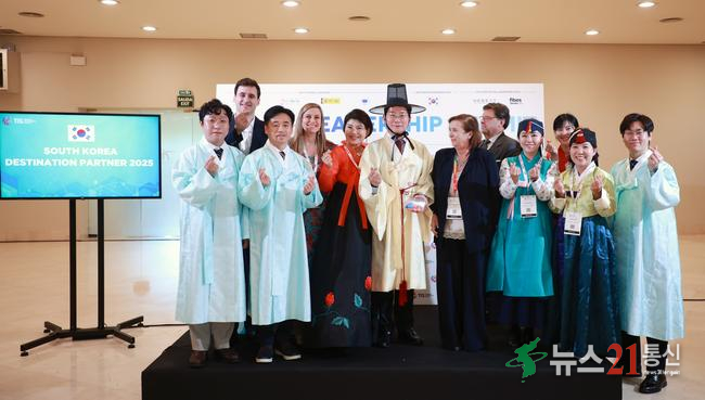 용인특례시(시장 이상일) 대표단이 스페인 세비야에서 열린 ‘관광혁신 서밋(Tourism Innovation Summit, TIS) 2025’에서 한복 차림으로 참석해 현지의 이목을 끌었다. (사진=용인특례시 제공)