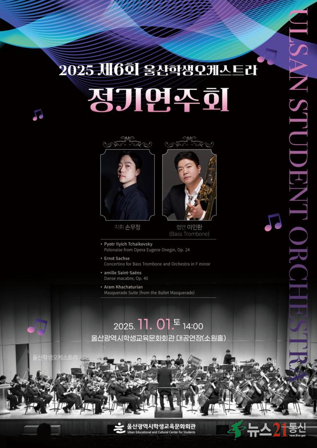 울산학생교육문화회관(관장 김현미)은 오는 11월 1일 오후 2시 대공연장 소원홀에서 ‘2025 울산학생오케스트라 제6회 정기연주회’를 연다.