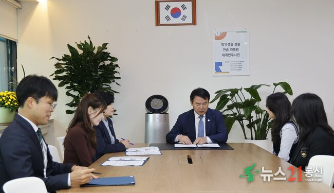[사진] 이정선 교육감 “‘학생 주도 교육 실현’ 적극 지원”이정선 광주시교육감과 15기 광주 고등의회 의장단이 학생자치 활성화 방안을 논의하는 자리를 가졌다.