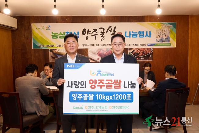 이번 기부는 양주연합농협미곡종합처리장(RPC, 대표 이용재) 주관으로 진행됐으며, 지역 7개 농협이 함께 참여해 양주골쌀 1,200포를 양주시에 전달했다.