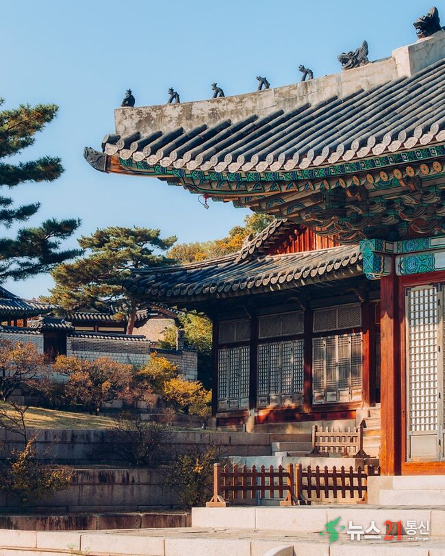 고궁을 간다면 문과 복도 등 네모난 형태의 프레임을 쉽게 마주할 수 있다. 이런 공간에서는 대칭을 맞춰 안정적이면서 시선이 중앙으로 모인다.