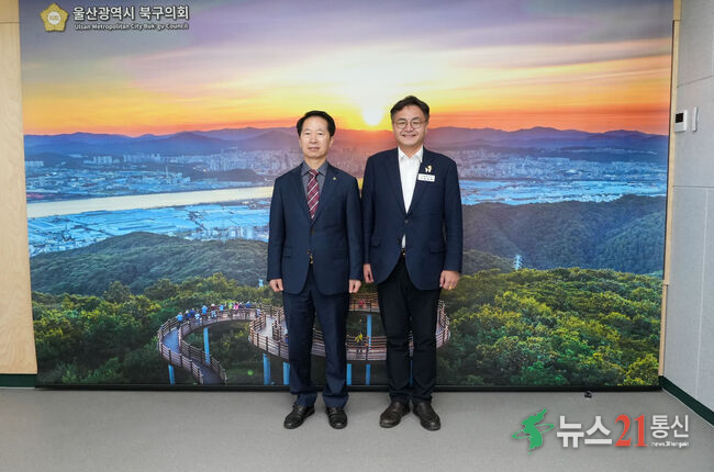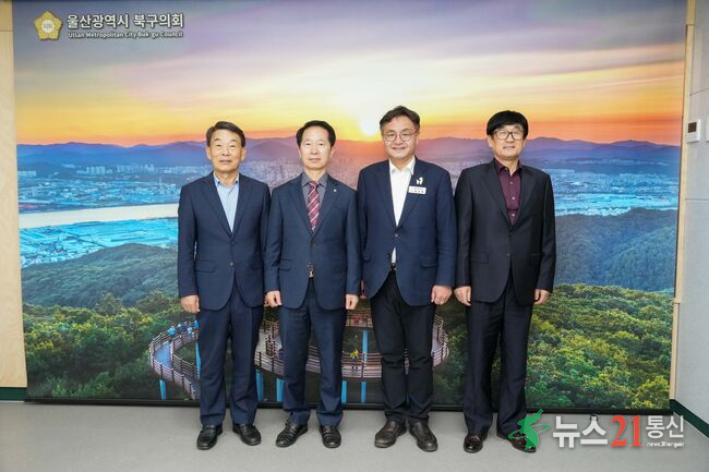 김상태 울산북구의회 의장이 27일 취임 인사차 의장실을 방문한 임정식 울산북구시설관리공단 이사장 및 관계자들과 만나 공단 운영 현안에 대해 논의했다.