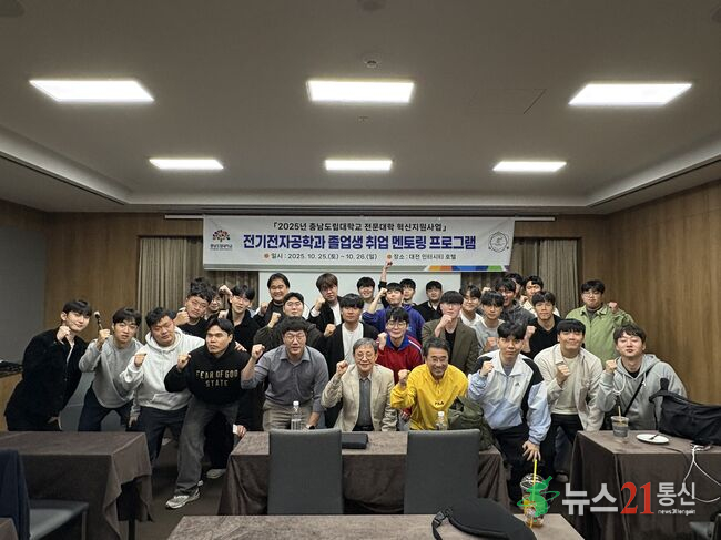 충남도립대학교 전기전자공학과가 지난 25~26일 대전에서 대기업 현직 엔지니어 선배들과 함께한 ‘취업 멘토링 프로그램’을 성황리에 마쳤다. 이번 프로그램은 재학생들에게 실질적인 취업 전략과 조직 적응 노하우를 전하기 위해 마련됐다.