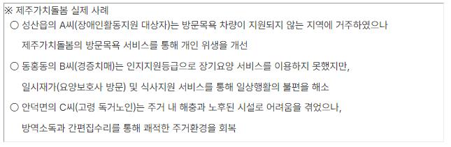 서귀포시 관계자는 "제주가치돌봄은 돌봄이 필요한 시민에게 실질적인 도움을 제공하고, 복지 사각지대를 해소하는 현장 중심 사업"이라며, "앞으로도 시민을 위한 따뜻하고 지속 가능한 돌봄 체계 구축에 최선을 다하겠다"라고 말했다.