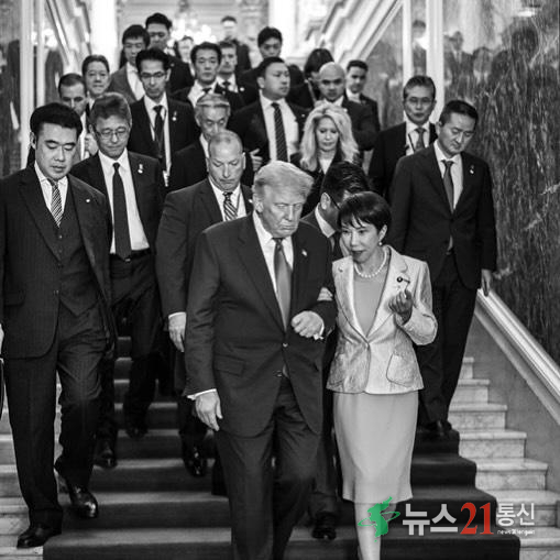 도널드 트럼프 미국 대통령과 다카이치 사나에 일본 총리가 28일 도쿄 모토아카사카 영빈관에서 첫 정상회담을 갖고 양국 동맹 강화를 재확인했다. 두 정상은 안보와 경제 현안을 폭넓게 논의하며 ‘새로운 미일 동맹의 시대’를 선언했다.교도통신에 따르면 약 40분간 진행된 회담에서 트럼프 대통령은 “미국과 일본은 가장 강력.