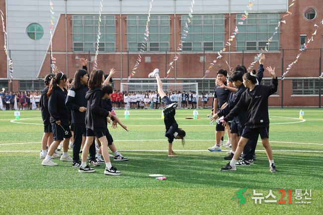 신수중 학생들이 인조잔디 운동장에서 운동을 하고 있다. 마포구 제공