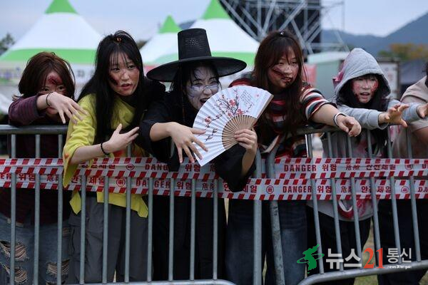 좀비와 저승사자도 장성 황룡강 가을꽃축제를 즐기러 나왔다. 장성군 제공