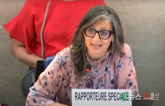 이탈리아 출신 인권변호사이자 유엔 인권이사회(HRC)가 임명한 특별보고관인 알바네제는 미국의 제재로 인해 뉴욕 유엔본부에 직접 참석하지 못하고 영상으로 발표를 진행했다. 그는 “미국의 제재는 유엔의 독립성과 도덕성에 대한 공격이며, 유엔 본연의 역할을 훼손하는 행위”라고 비판했다.