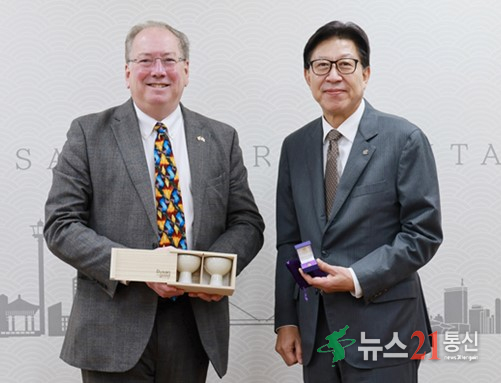 부산시는 29일 오전 시청 국제의전실에서 박형준 시장과 마이클 마이넬리 영국 지옌(Z/Yen) 회장이 만나 양국 간 금융 및 경제 협력 방안을 논의했다고 밝혔다.