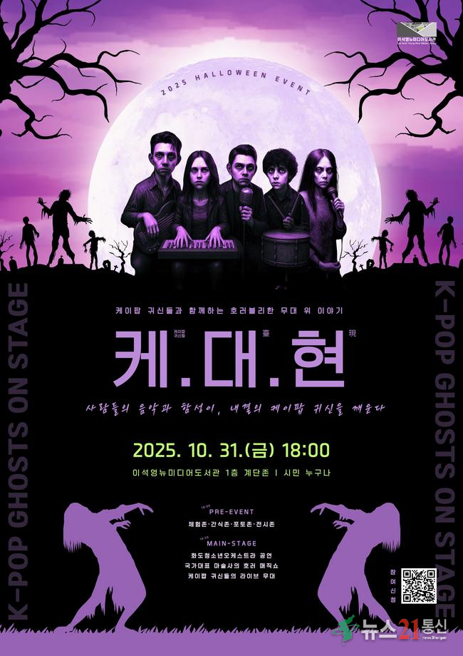 남양주시(시장 주광덕)는 핼러윈을 맞아 오는 10월 31일 이석영뉴미디어도서관에서 ‘케이팝 귀신들과 함께하는 호러블리한 무대 위 이야기 케.대(臺).현(現)’을 개최한다고 30일 밝혔다.
