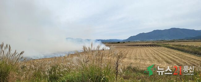 해남 간척지에서 논두렁 태우기를 하고 있는 농부