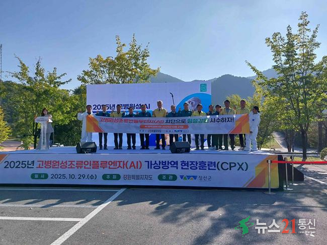 강원특별자치도(도지사 김진태)는 10월 29일 오후 2시 정선군 종합경기장에서 정선군과 합동으로 ‘2025년 조류인플루엔자(AI) 가상방역 현장훈련’을 실시했다고 밝혔다.