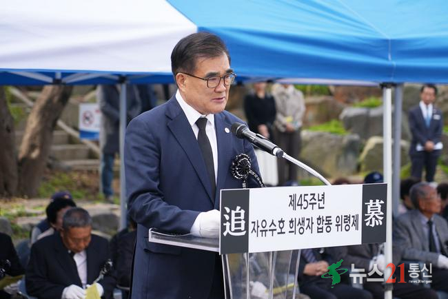 서천군은 10월 30일 한국자유총연맹 서천군지회(회장 김종문) 주관으로 서천중학교 내 자유수호 희생자 위령탑 광장에서 ‘제45회 자유수호 희생자 합동 위령제’를 거행했다. 서천군 제공