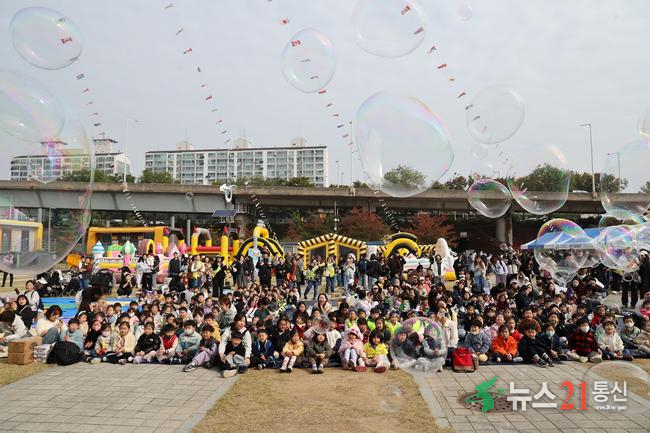 오전에는 풍물놀이 퍼레이드를 시작으로 웰컴 투 버블랜드, 인형극 공연 등 흥겨운 무대가 이어졌으며, 오후에는 풍선 마술쇼와 줄넘기 공연, 누구나 노래자랑, 댄스 경연대회 등으로 축제의 열기를 더했다.