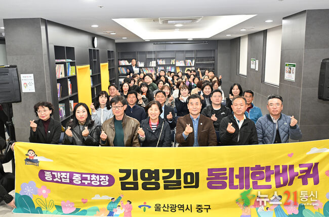 울산 중구(구청장 김영길)가 지난 29일 복산동 번영로센트리지 아파트 내 작은도서관에서 10월 종갓집 중구청장의 동네 한바퀴 행사를 열었다. 이날 김영길 중구청장은 주민들의 불편 사항과 건의 사항을 청취하고 해결 방안을 모색했다.
