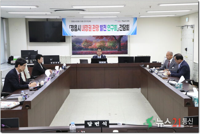 정읍시의회 의원 연구단체 정읍시 내장권 관광 발전 연구회가 간담회를 개최하고있다.