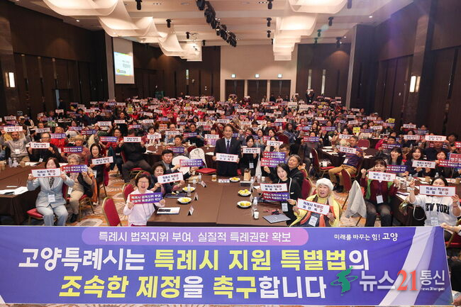 고양특례시(시장 이동환)는 지난 30일, 연천군 백학자유로리조트에서 열린 ‘2025년 고양시 주민자치 역량강화 워크숍’에서 ‘특례시 지원에 관한 특별법’의 조속한 제정을 촉구하는 시민참여형 퍼포먼스를 전개했다고 밝혔다.