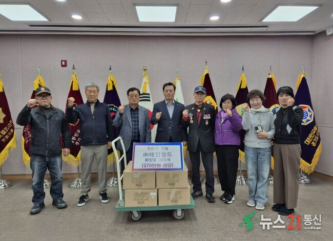 ㈜태인월드가 지난 10월 30일, 양주시 보훈단체에 화장품 300개(총 270만 원 상당)를 기부했다.