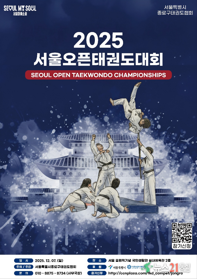 국내외 태권도인의 기술과 열정을 한자리에 모으는 **'2025 서울오픈태권도대회(Seoul Open Taekwondo Championsips)'**가 오는 2025년 12월 7일(일) 서울 올림픽기념 국민생활관 실내체육관 2층에서 개최된다.