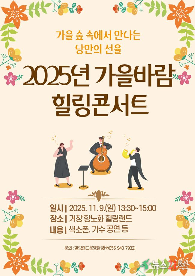 [뉴스21 통신=김희백 사회2부기자] 거창군은 오는 9일 거창 항노화 힐링랜드에서 ‘2025년 가을바람 힐링콘서트’를 개최한다고 6일 밝혔다.