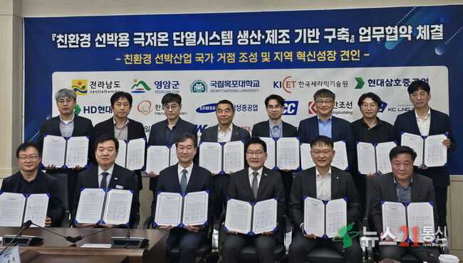 [뉴스21 통신=박철희 ]전라남도가 조선해양 분야의 전문성과 기술력을 갖춘 대학, 연구기관, 기업들과 손잡고 친환경 선박용 극저온 단열시스템의 생산·제조 기반 구축에 나섰다.