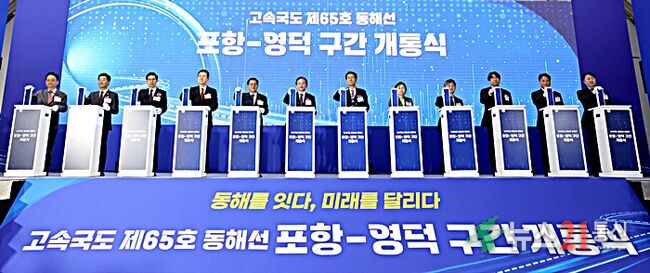 이철우 경상북도지사는 “포항~영덕 고속도로 개통은 동해안권 시대를 여는 신호탄이며, 포항·영덕 등 해양 관광 축을 하나로 연결해 관광권 확장에도 기대가 된다”며 “동해안 고속도로의 마지막 퍼즐인 영덕~삼척, 영일만 횡단구간도 조기에 완성할 수 있게 최선을 다하겠다”고 덧붙였다.