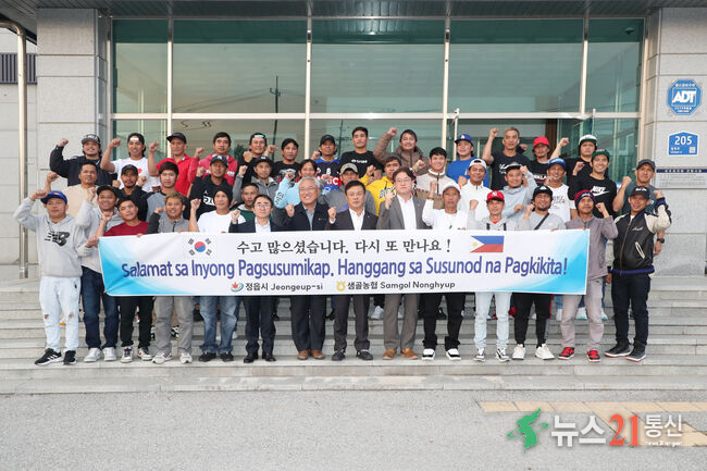 정읍시는 지난 6일 약 6개월간의 활동을 마친 필리핀 근로자 38명을 위한 환송식을 열고 감사의 뜻을 전했다고 7일 밝혔다.