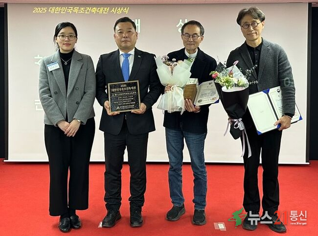 산림청 산하 공공기관인 한국산림복지진흥원(원장 남태헌)은 5일 서울에너지드림센터에서 열린 ‘2025년 대한민국목조건축대전’ 산림복지종합교육센터가 준공 부문 대상(국토교통부 장관상)을 수상했다고 밝혔다.