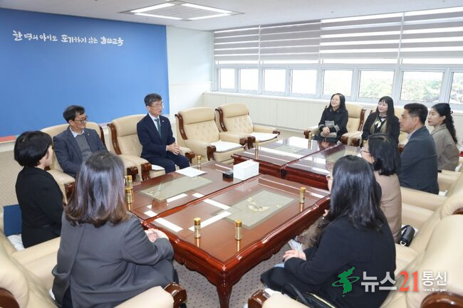 [뉴스21 통신=최병호 ]*사진출처-울산교육청2025년 11월 4일(화요일), 중구마을교육협의회 최병호 회장과 임원진은 울산광역시교육청을 방문하여 천창수 교육감과의 소통 간담회를 가졌다. 이번 간담회는 지역사회와 교육청이 협력하여 마을교육의 발전 방향을 모색하고, 청소년이 행복한 교육환경을 조성하기 위한 뜻깊은 자리로 마련되었다...