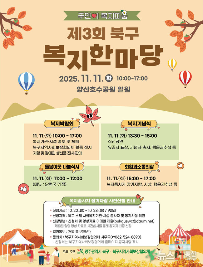 [뉴스21통신/전배룡기자] 광주광역시 북구는 오는 11일 양산호수공원 일대에서 ‘복지한마당’ 행사를 개최한다고 10일 밝혔다.