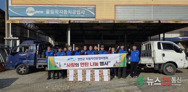 연천군자동차전문정비협회(회장 민정식)는 지난 9일 관내 소외계층 지원을 위한 ‘사랑의 연탄나눔행사’에 회원 13명이 참여해 연탄 2,000장과 라면 10박스 등 200만 원 상당의 후원물품을 전달했다고 밝혔다.