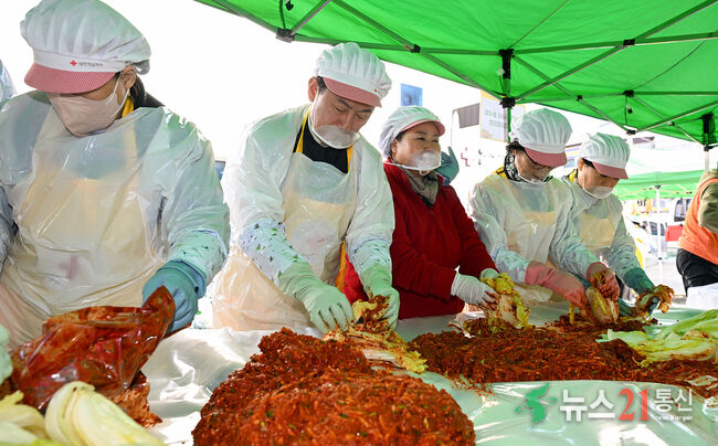 의정부시(시장 김동근)는 11월 11일 대한적십자사봉사회 의정부시협의회(회장 양점숙)와 함께 ‘사랑의 김장나눔행사’를 열어 지역 취약계층에게 따뜻한 겨울을 선물했다.