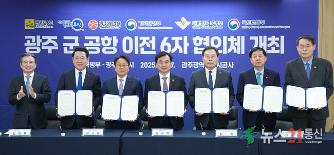 광주시-전남도-무안군이 18년간 표류해온 광주 민·군공항 통합 이전에 전격 합의했다. 이들 기관이 ▲주민지원사업 1조원 자금 조성방안 신속 제시 ▲무안 국가산업단지 신속 지정 ▲호남고속철도 2단계 개통에 맞춰 광주공항 국내선 무안공항 조속 이전 등에 뜻을 함께 하면서다.광주광역시는 17일 광주광역시도시공사에서 열린 대통..