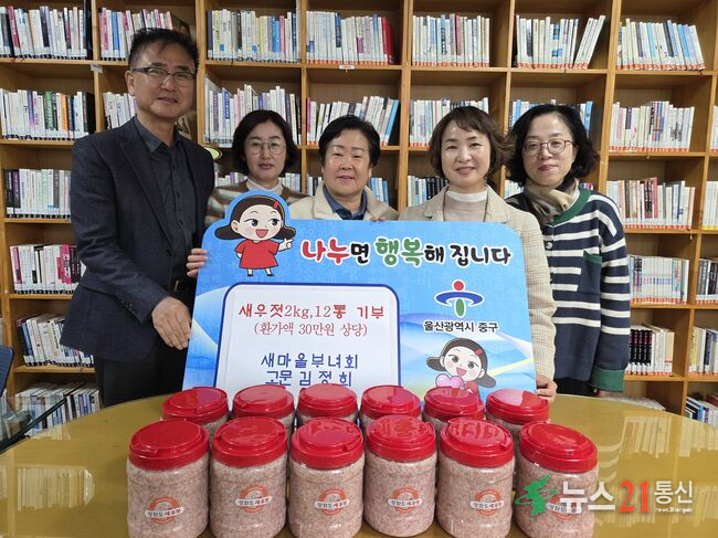 울산 중구 반구1동 새마을부녀회 김정희 고문이 12일 반구1동 행정복지센터를 찾아 저소득층을 위한 울산큰애기 사랑나눔냉장고에 30만 원 상당의 새우젓 2kg 12통을 후원했다.