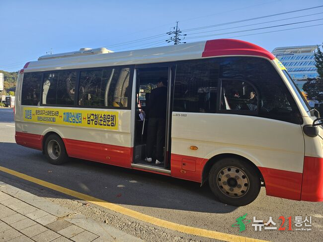 남구 관내 공공시설을 오가는 무료 셔틀버스는 2대이며, 평일 오전 7시부터 오후 7시까지 배차 간격을 25~55분으로 탄력 적용해 하루 11차례 운행한다.