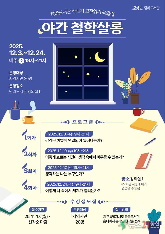 탐라도서관이 시민들과 함께 칸트의 『순수이성비판』을 읽으며 인간의 자아정체성을 탐구하는 ‘야간 철학살롱’ 프로그램을 운영한다.