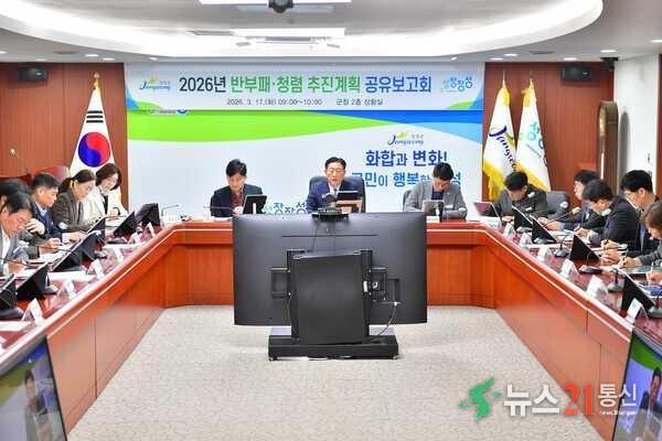 장성군이 보다 청렴한 공직사회를 만들기 위해 팔 걷고 나섰다. 군은 17일 군청 상황실에서 ‘반부패·청렴 추진계획 공유보고회’를 갖고, 청렴 실천 의지를 다졌다.김한종 군수와 간부 공무원 등 50여 명이 참석한 이번 공유보고회에선 주요 추진 과제인 △‘청렴온(#111;n)콜’ 확대 운영 △‘청렴사무(四無)실 캠페인&r...
