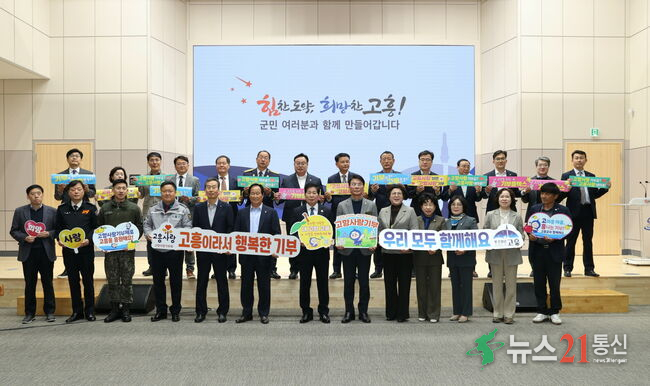 고흥군(군수 공영민)은 3월 17일 군청 우주홀에서 올해 첫 고흥군 기관·단체장 협의회 정기총회를 개최하고, 지역 현안 공유와 기관·단체 간 협력 강화를 위한 소통의 시간을 가졌다.이날 회의에는 군 기관·단체장 35명이 참석했으며, 신임·신규 기관·단체장 소개를 시작으로 기관·단체별 주요 협조사항 안내, 고...