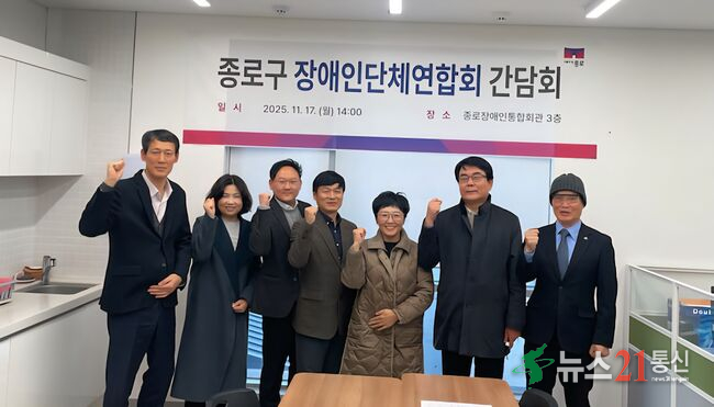 종로구가 11월 17일 오후 2시 종로장애인통합회관 3층에서 장애인단체연합회와 간담회를 열고, 장애인 정책 전반에 대한 건의사항과 협력 방안을 논의하는 뜻깊은 자리를 마련했다. 이번 간담회에는 종로구 복지교육국과 사회복지과, 장애인정책팀 관계자를 비롯해 종로구 장애인단체연합회 소속 6개 단체장 및 시설장 등 총 13명이 참석해 ..