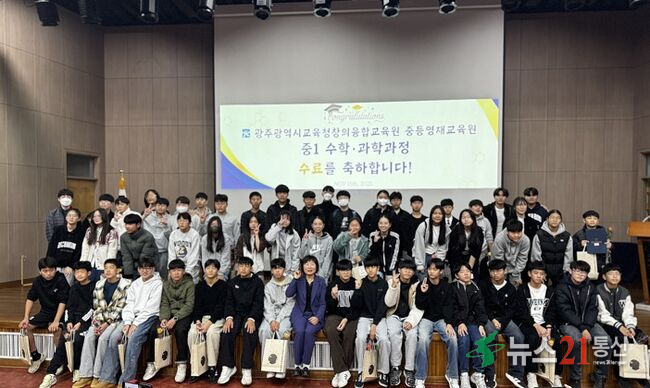 광주광역시교육청창의융합교육원(이하 광주창의융합교육원)은 지난 15일 본원 대강당에서 중등영재교육원 중학생 141명과 학부모들이 참석한 가운데 ‘2025학년도 영재교육원 수료식’을 개최했다.광주창의융합교육원은 광주 학생을 미래사회 핵심 인재로 키우기 위해 영재교육과정을 운영하고 있다. 올해 교육은 주중반 수학·..