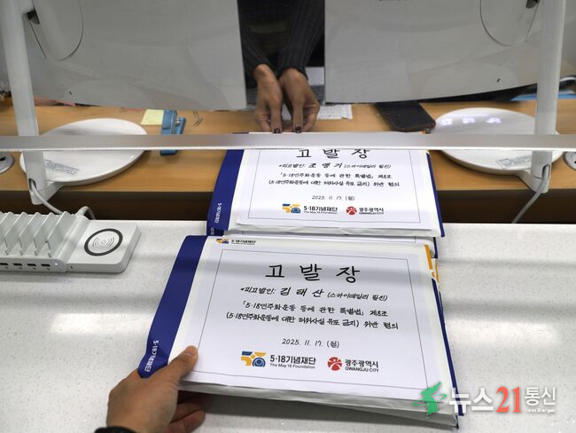 사진_고발장[뉴스21통신/장병기] 광주광역시와 5·18기념재단은 17일 인터넷신문 스카이데일리 외부필진 2명을 ‘5·18민주화운동등에관한특별법’ 제8조 ‘허위사실 유포 금지’ 위반 혐의로 광주경찰청에 고발했다.