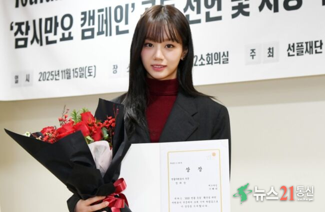 혜리는 지난 15일 국회의원회관 제2소회의실에서 개최된 ‘YouTube-선플재단의 잠시만요 캠페인 공동 선언 및 시상식 - 우리가 함께 만드는 건강한 인터넷 문화’에 참석했다. 혜리는 이날 선플문화 확산에 기여한 공로를 인정받아 선플재단에서 수여하는 이사장상을 수여했다.